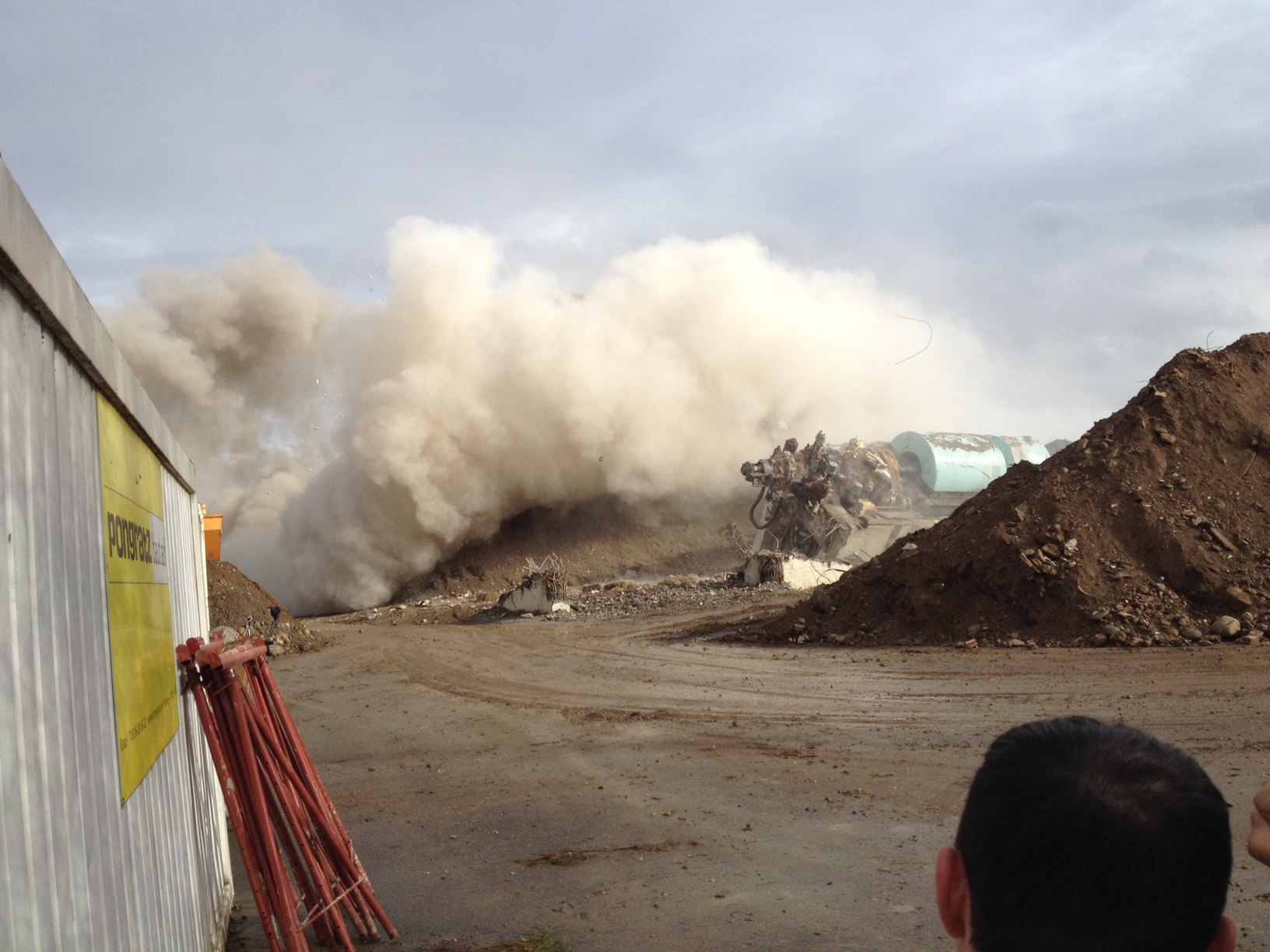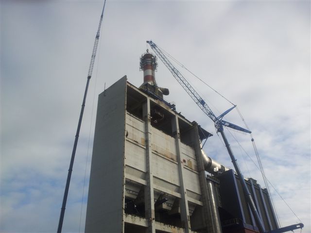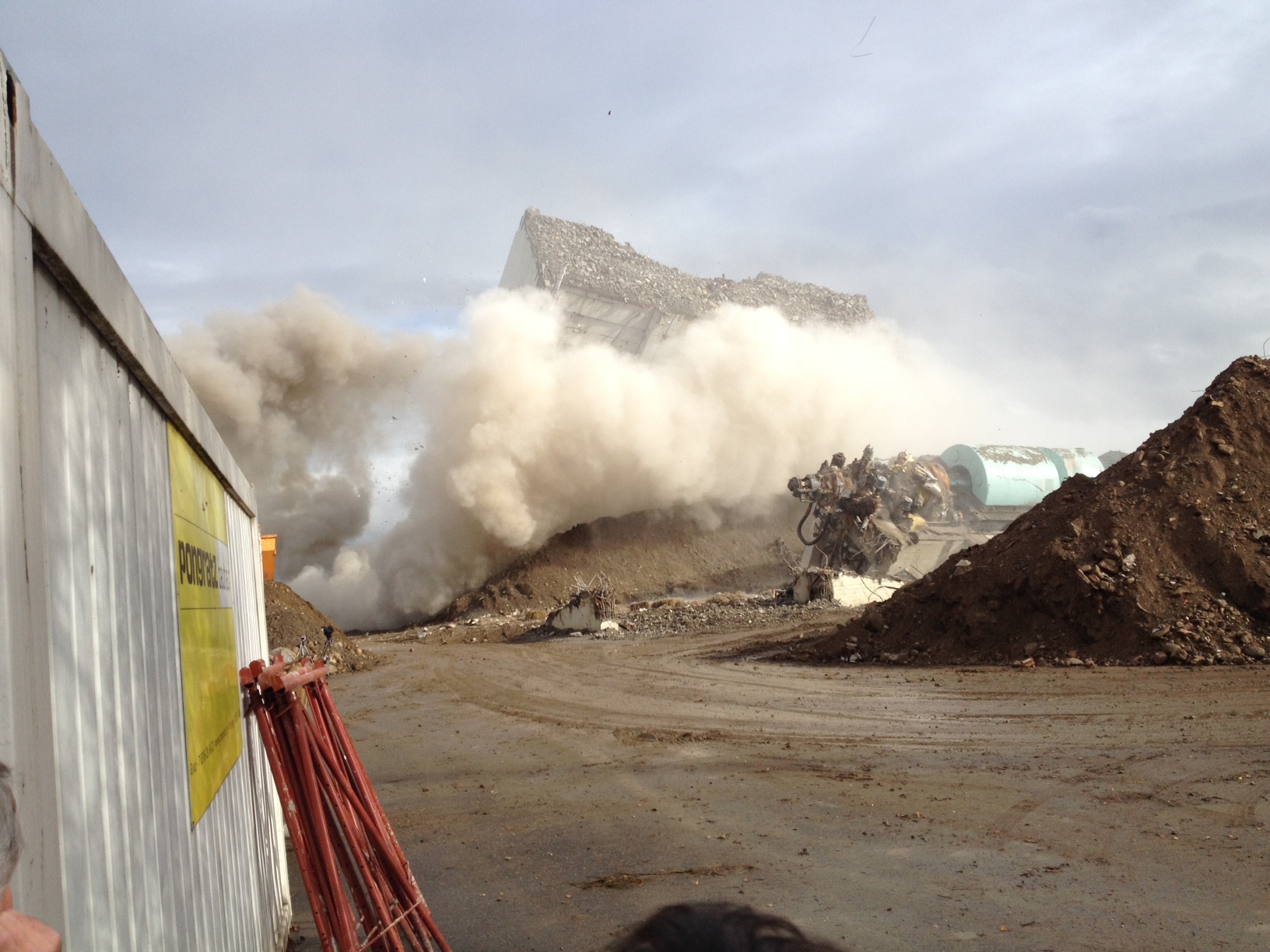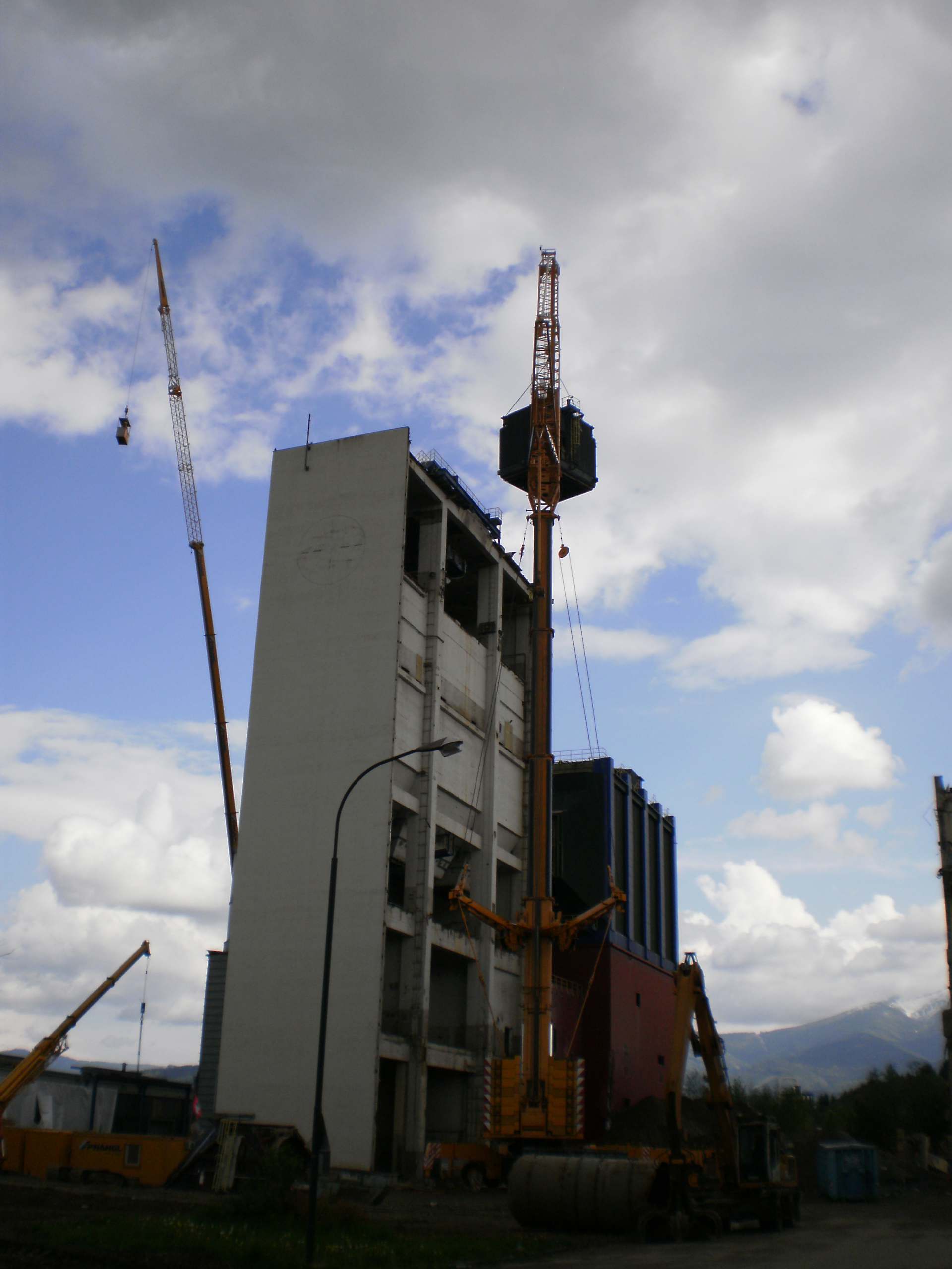 Durch eine missglückte Fehlesprenger der Vorgängerfirma fiel ein Gebäude auf das Maschinenhaus  und die Firma Pongratz Spezialabbruch wurde damit beauftragt die Abbruch- und Sprengarbeiten fachmännisch zu beenden. Schon im November 2013 wurde mit den Aufräumarbeiten nach der Sprengung begonnen, dadurch kam es zu geringfügigen Verzögerungen. Ein Spezialbagger wurde von einem 500 Tonnen schweren Kran auf den Kohlebunker gehoben um sich nach unten zu graben und das Gebäude Schritt für Schritt abzutragen. Die meisten Abbrucharbeiten mussten von Hand ausgeführt werden. In schwindelnder Höhe wurde auch die Filteranlage entfernt.