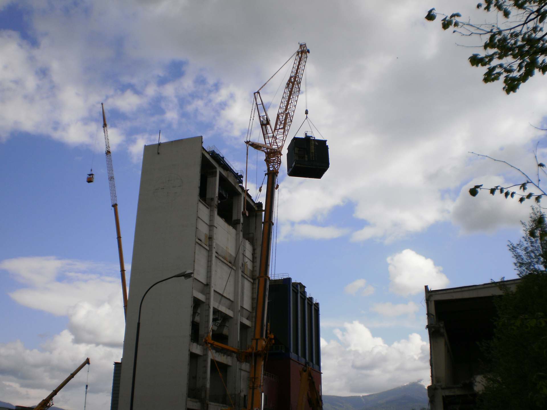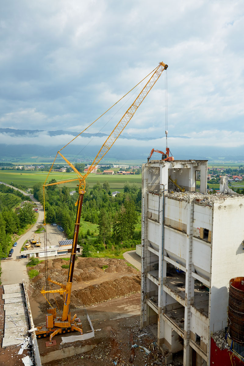 Dazu mussten die Filter einzeln ausgebaut werden. Pongratz ist Spezialist für Arbeiten dieser Art. „Wir haben schon ähnliche Abbrucharbeiten in ganz Österreich durchgeführt“, berichtet Anton Grübler. Auch am Fliegerhorst Hinterstoisser in Zeltweg musste um Arbeitserlaubnis gebeten werden. Schließlich war das Gebäude 90 Meter hoch. Bestehende Spezialleuchten wurden deswegen ummontiert und die Arbeitszeiten genau festgelegt.