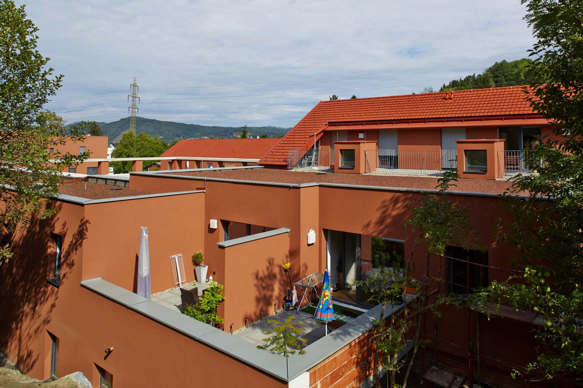 Nicht einsehbare Freibereiche (Atrien, Innenhöfe, Dachterrassen, Terrassen und Gärten) schenken Privatsphäre. Die in die Landschaft übergehenden Gemeinschaftsflächen (z. B. Spielplätze) wurden zu Kommunikationsorten gestaltet. Pongratz Bau wurde bei diesem Projekt mit den Baumeisterarbeiten für sechs Bauabschnitte (inklusive Abdichtung, Innenputz und Estrich) beauftragt. Die Umsetzung gestaltete sich aufgrund der unterschiedlichen architektonischen Realisierungsvorgaben innerhalb nur einer Wohnanlage als besonders interessant. Nicht zu unterschätzen war auch der logistische Koordinationsaufwand (Personal und Maschinen) für die unterschiedlichen, dem Gelände angepassten Bauformen. Als besonders positiv ist bei diesem Projekt die Zusammenarbeit aller am Projekt beteiligten Unternehmen und die große Zufriedenheit des Bauherrn hervorzuheben.