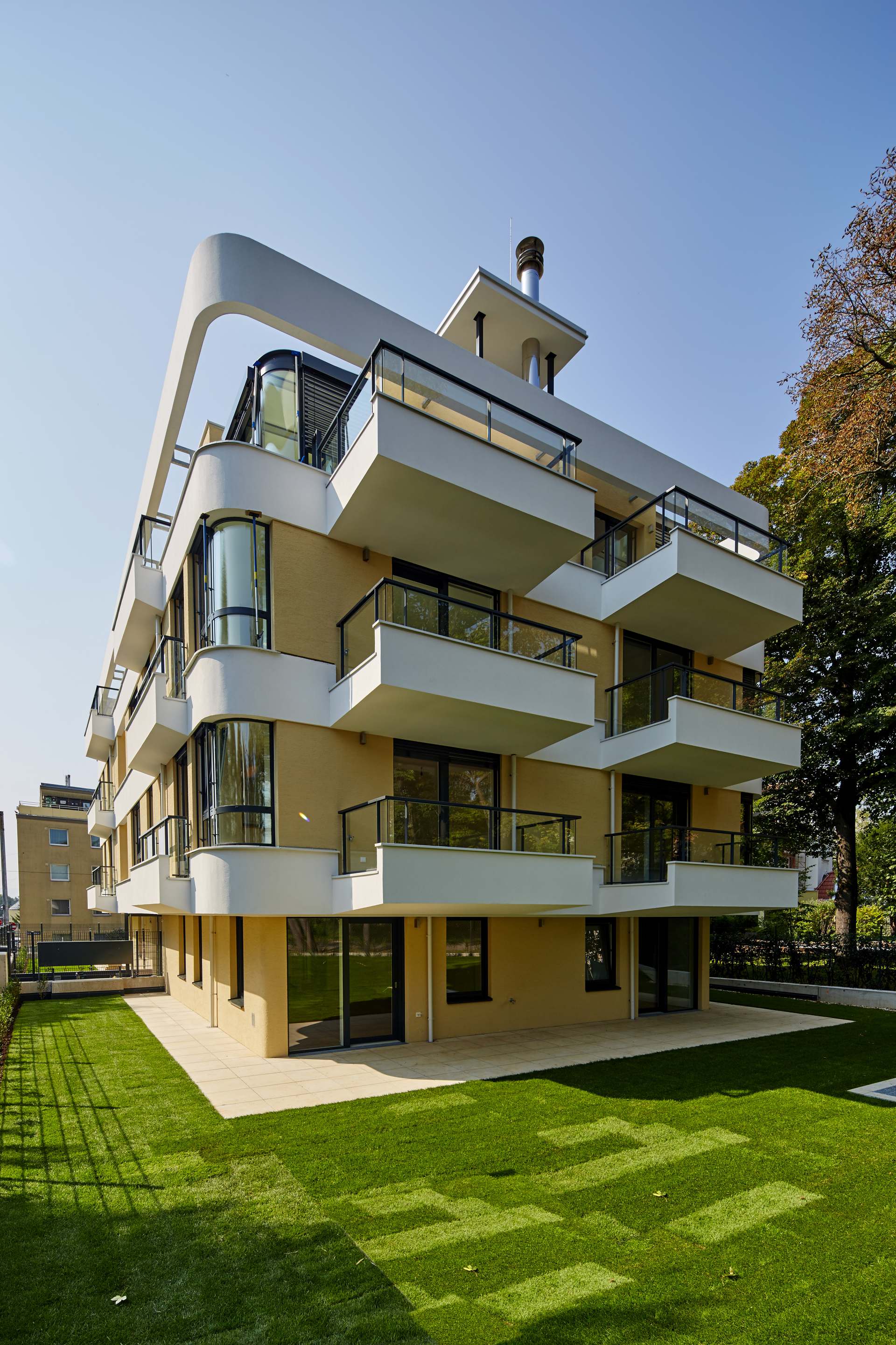 Die Premium Bauträger GmbH betraute, nach bereits erfolgter gemeinsamer Projektabwicklung, abermals die Pongratz Bau GmbH mit der Errichtung der nächsten Wohnanlage. Als Generalunternehmer wurde dieses architektonisch wertvolle Schmuckstück, mit hoher Ausstattungsqualität, zur Zufriedenheit des Bauträgers, und schließlich der Endkunden, errichtet. Besonderes Augenmerk wurde auf das Mitspracherecht der zukünftigen Wohnungseigentümer gelegt, so konnten alle Wohnungen nach den individuellen Bedürfnissen Ihrer Bewohner geplant und umgesetzt werden. Großzügige Gartenflächen sowie ausreichend Balkone und Terrassen runden den sonnendurchfluteten Wohnbau ab, welcher auch im Dachgeschoß mit 4 Wintergärten, sowie den einachsig gebogenen Gläsern in den Gebäudeecken, besonders charmant ins Ortsbild von Hetzendorf passt. Als Herausforderung stellte sich der architektonische Sonnenschutzbügel im Dachgeschoßbereich dar, welcher sich als freischwebendes Band rund um das Gebäude schmiegt.