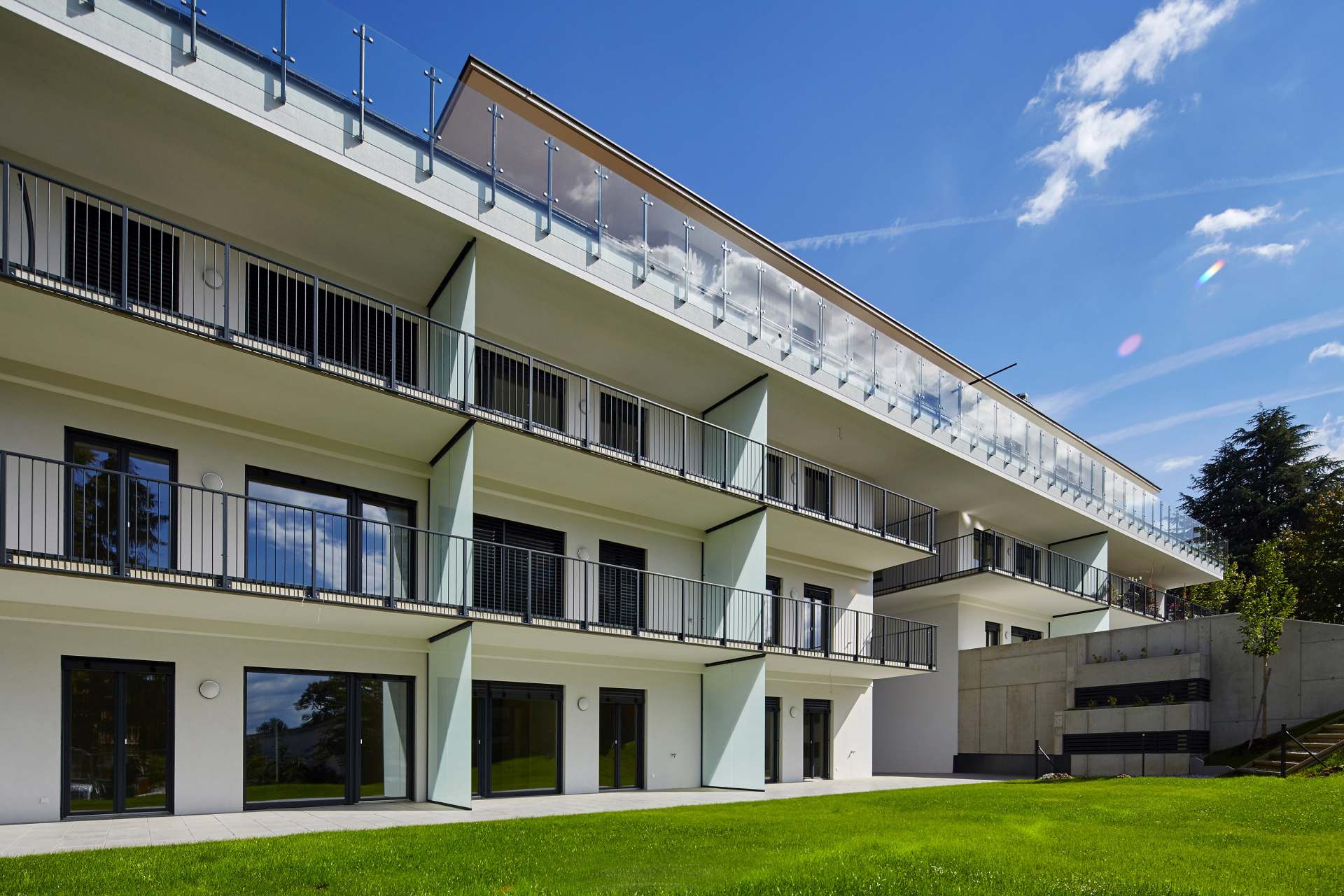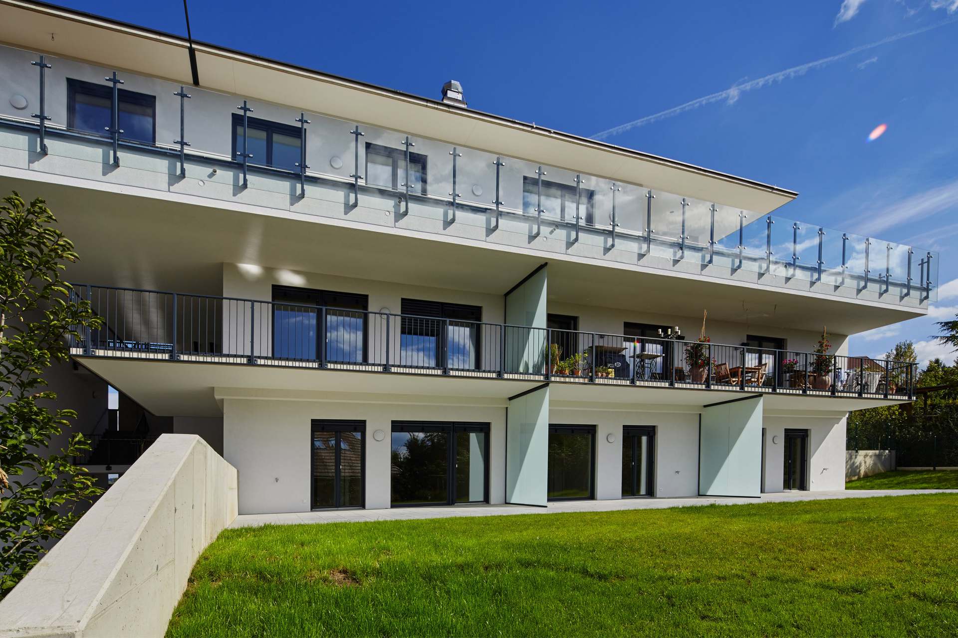 Jede Wohneinheit ist ausserdem mit einem Balkon oder einer Terrasse bzw. Eigengarten versehen. Die Wohnungstypen von Etagenwohnungen mit ~53m², ~66m², ~78m2 und ~98m² bis hin zu zwei Penthousewohnungen mit ~135m² und ~144m² mit großen Dachterrassen wurden in höchster Qualität und bestem energetischen Standard errichtet.